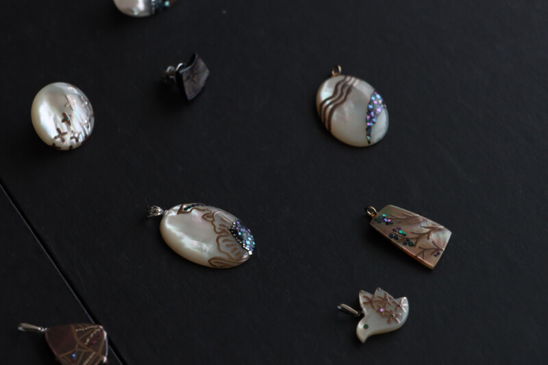土台の白蝶貝に蒔絵・螺鈿を施します。