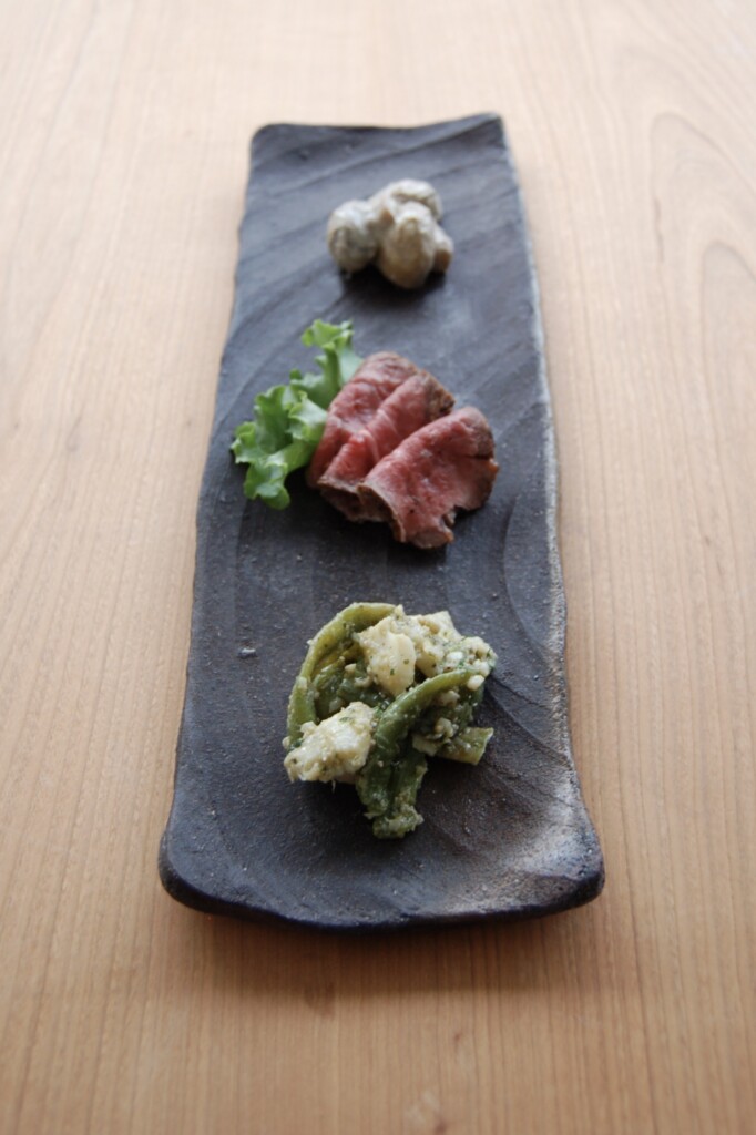こちらの器に盛り付けたお料理は、松本市の女鳥羽川沿いにある「欧州惣菜 カワゾイ」様 にて購入させていただきました!