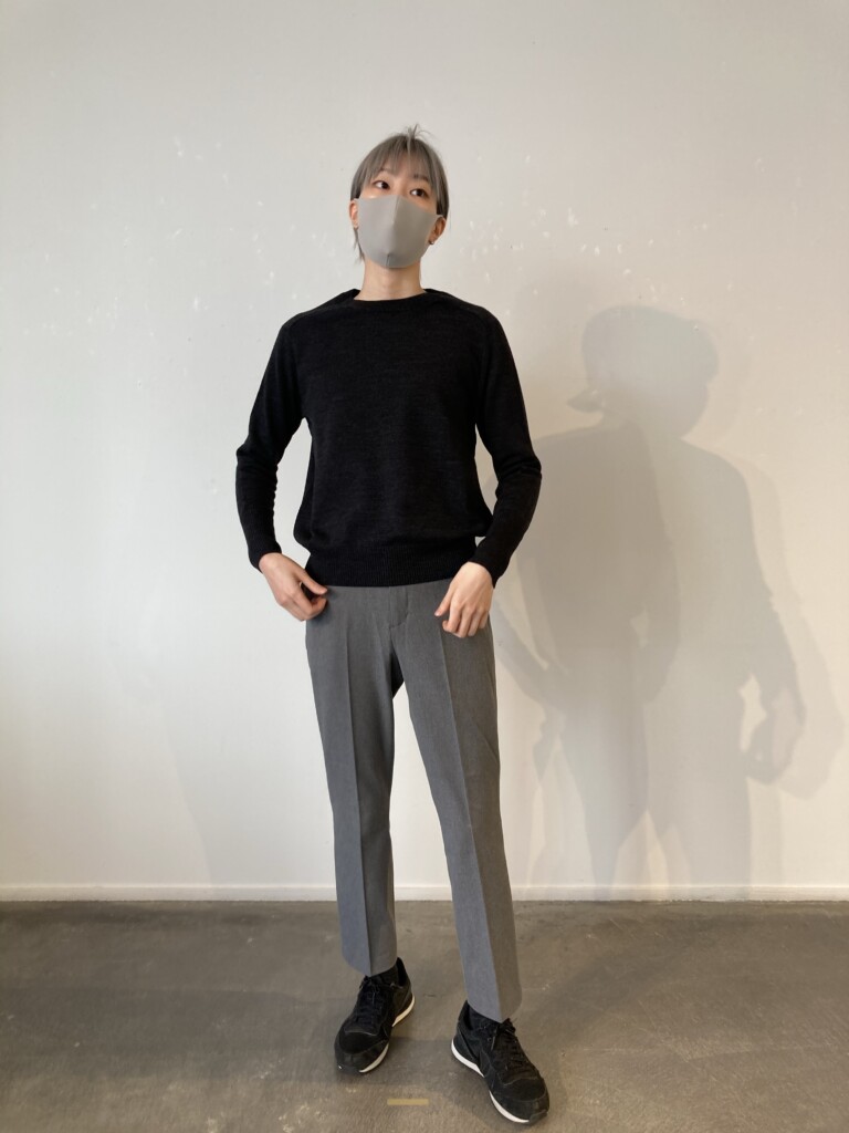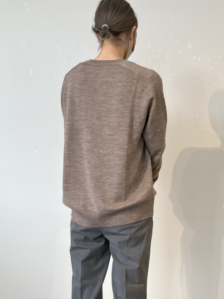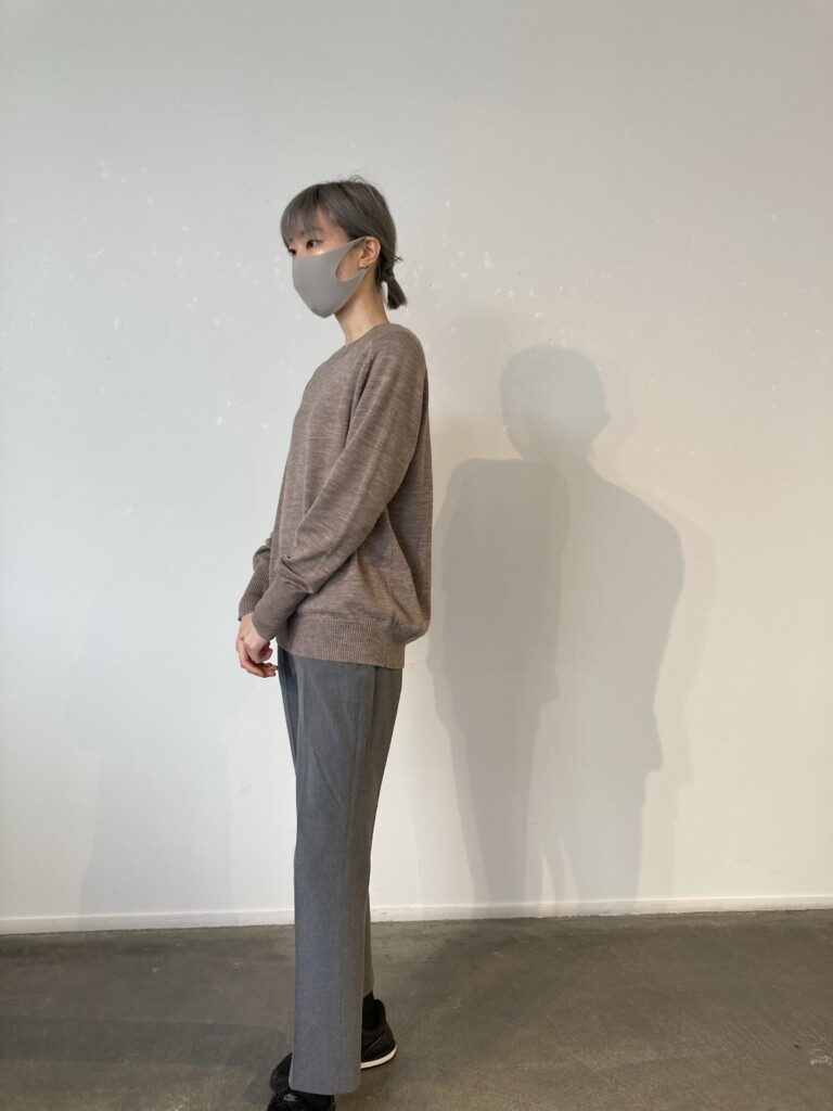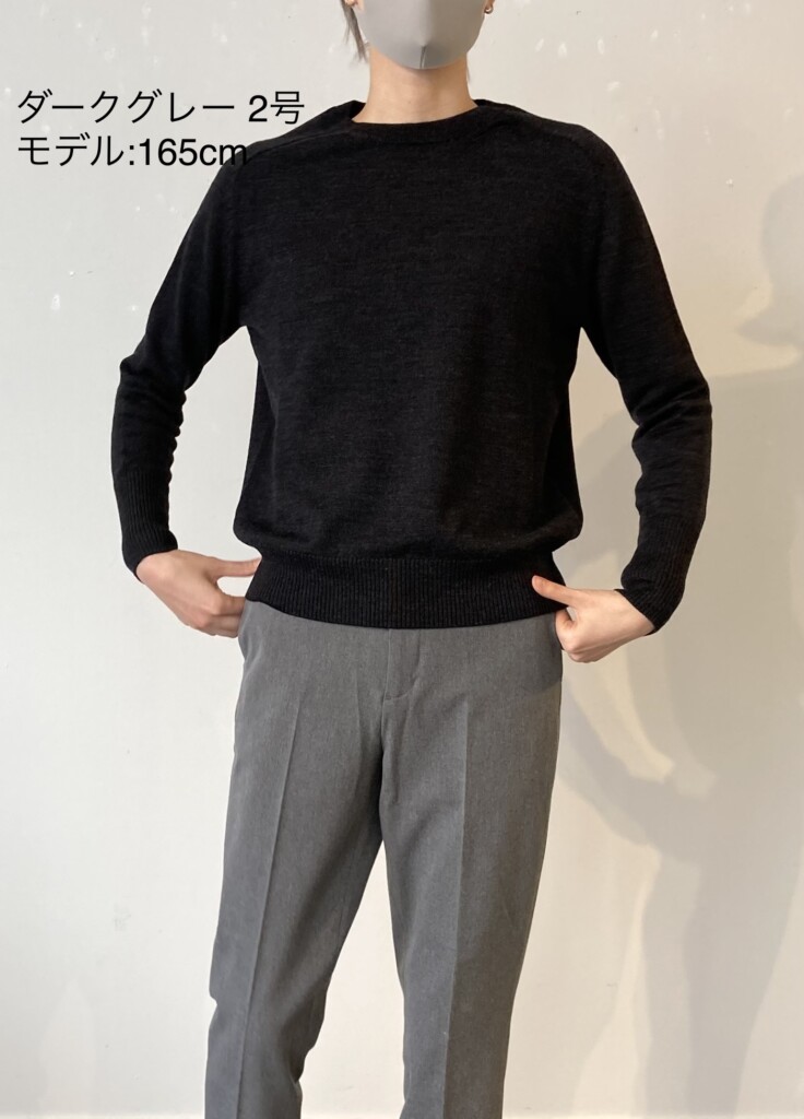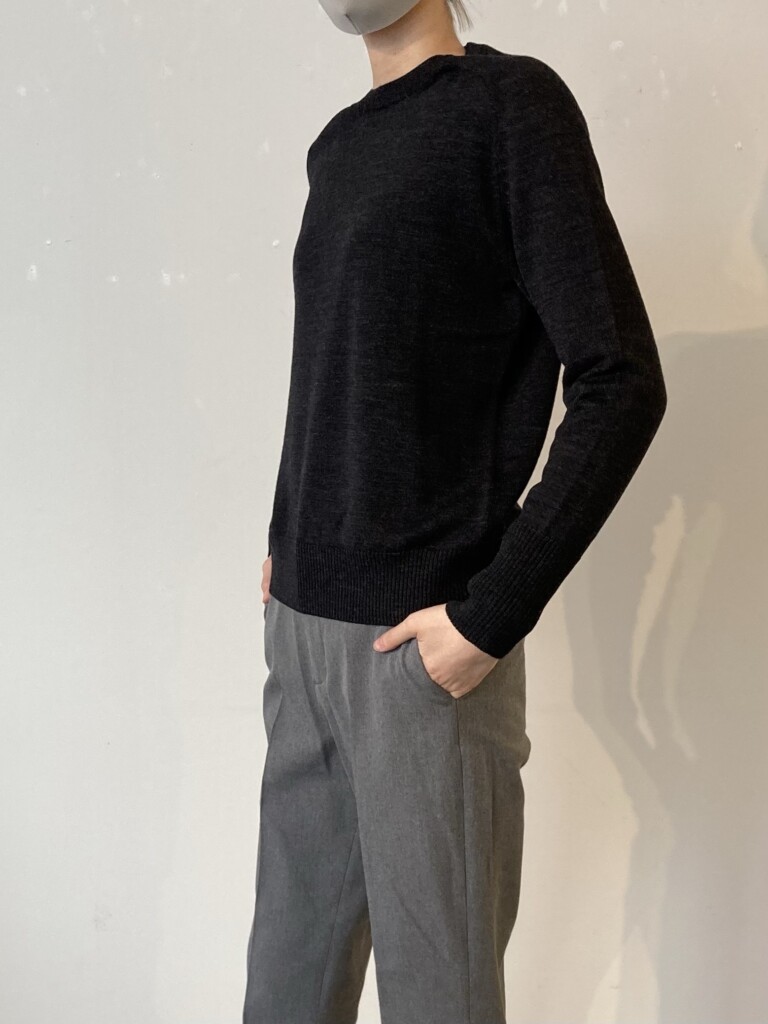 「スーパー エクストラ ファイン メリノウール」という、イタリアの上質糸を使用されています。細い糸を密に編み上げた、滑らかな手触りのセーターです。